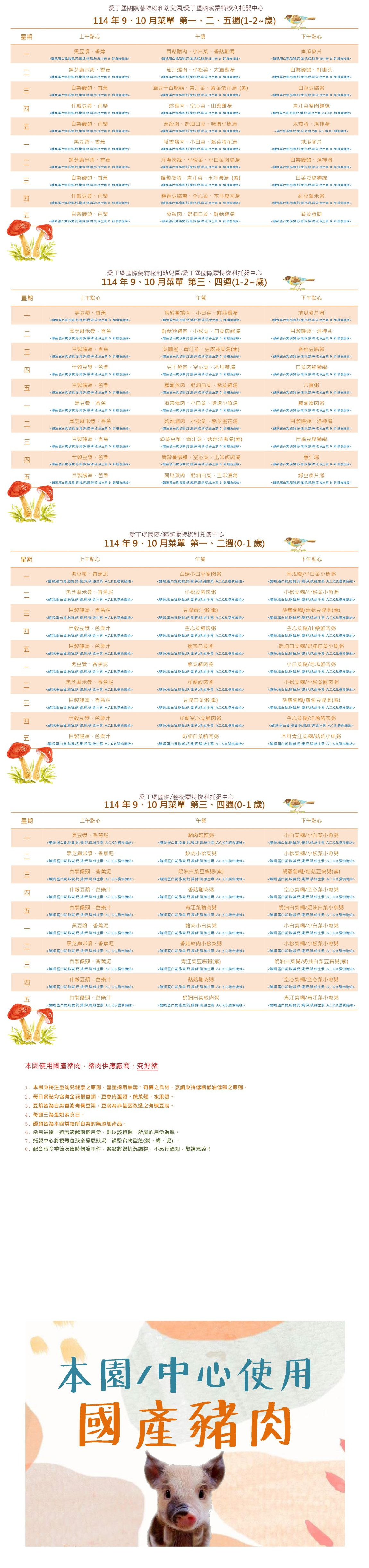 114年09.10月菜單